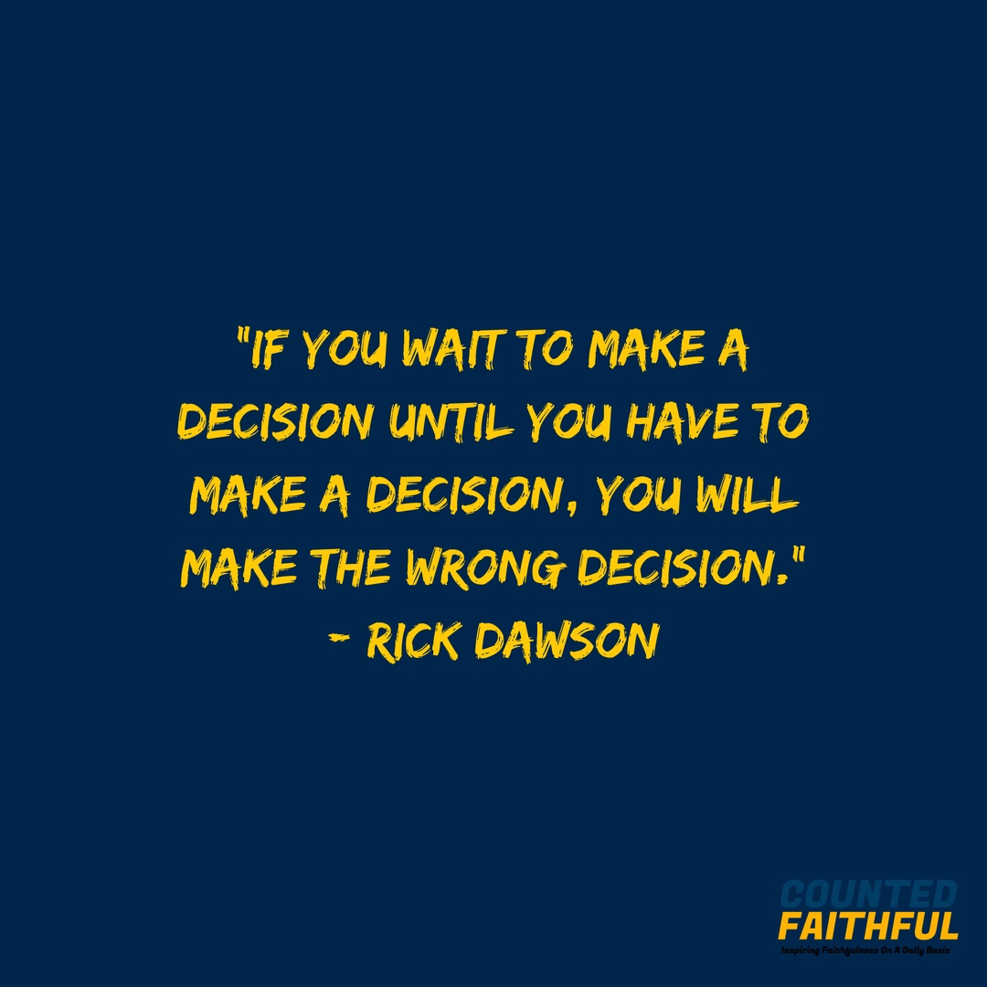Many choices we make, have already been decided by past decisions. We need to get settled in our heart what we believe is right and wrong before we are faced with that choice. If we wait until that moment where we are faced with making a decision, we will end up making the wrong decision.