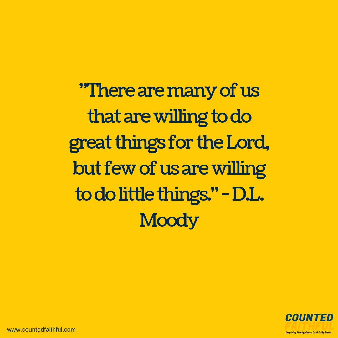 I think that too many Christians are sitting on the sidelines waiting for that one great thing to happen and then they will get busy for Christ. That isn’t how it works…God wants to see you busy with the little things He has commanded us to do before He ever gives you a great opportunity.